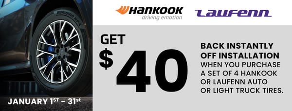 Save $40 instantly on installation of any four Hankook or Laufenn auto or light truck tires.