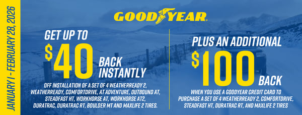 Save up to $140 when you purchase and install a set of four select Goodyear auto or light truck tires.
