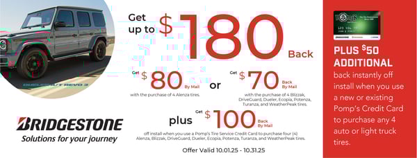 With a huge selection of top brands in stock, Pomp's Tire Service is sure to have the right tires for your passenger and light truck tire needs. We buy Direct from the Manufacturer so we can provide the best you with the best value. Some of the brands we carry include Bridgestone, Firestone, Michelin, BFGoodrich, Goodyear, Kelly, Hankook, Pirelli and more.